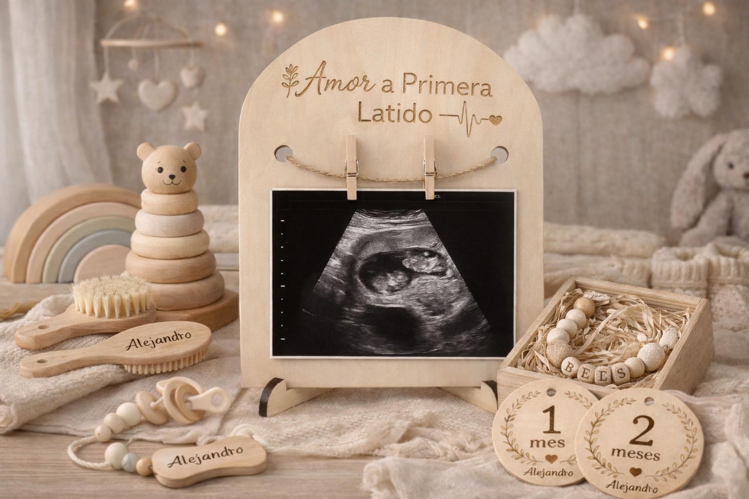 Nuestro marco de ecografía personalizado en madera está diseñado para sostener y realzar la primera imagen de tu bebé, creando una pieza decorativa cálida, emotiva y única. Fabricado en madera natural y grabado con frases llenas de significado, es el regalo perfecto para anunciar un embarazo o decorar la habitación del bebé.